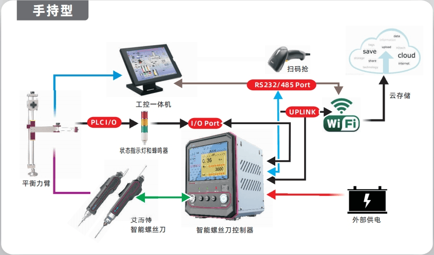 艾而特智能螺丝刀是艾而特结合螺丝拧紧行业的丰富经验与微电机制作的优势上,突破目前生产装配领域拧紧的技术壁垒,成功研发出的智能拧紧系统。辅助控制紧固组装工序作业过程,记录作业过程参数,智能提示错误操作,开启工业拧紧数字化新篇章。其采用高性能交流永磁同步伺服电机 高精度编码器 减速机实现智能数字化驱控、小巧、无粉尘、低噪音、抗震能力强、使用寿命长。可以实时监控扭力 角度 时间,实现滑牙、漏打等异常情况出现时第一时间报警功能。完美解决拧紧数据本地存储,数据接口传输,可对接工厂mes,方便进行质量追溯,实现数字化控制。
